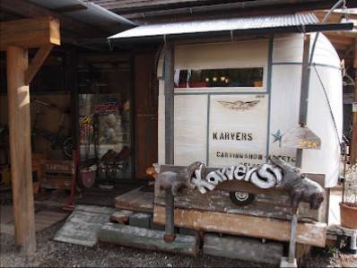 お店の周りには木製オブジェが置いてあり見応えあり。