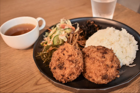 ● ワンプレーレストランでメインとご飯が一つで、スープ付き。定食系のものはお惣菜を一回好きなだけ盛り付けられます。