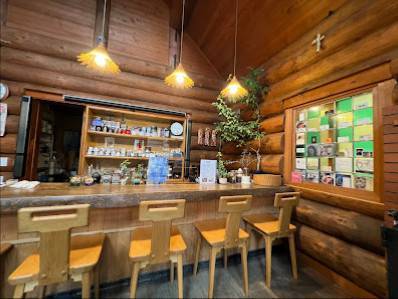 何軒かある飲食店、どこも混んできて少し裏路に入るとどこか落ち着く雰囲気を持つログハウス。